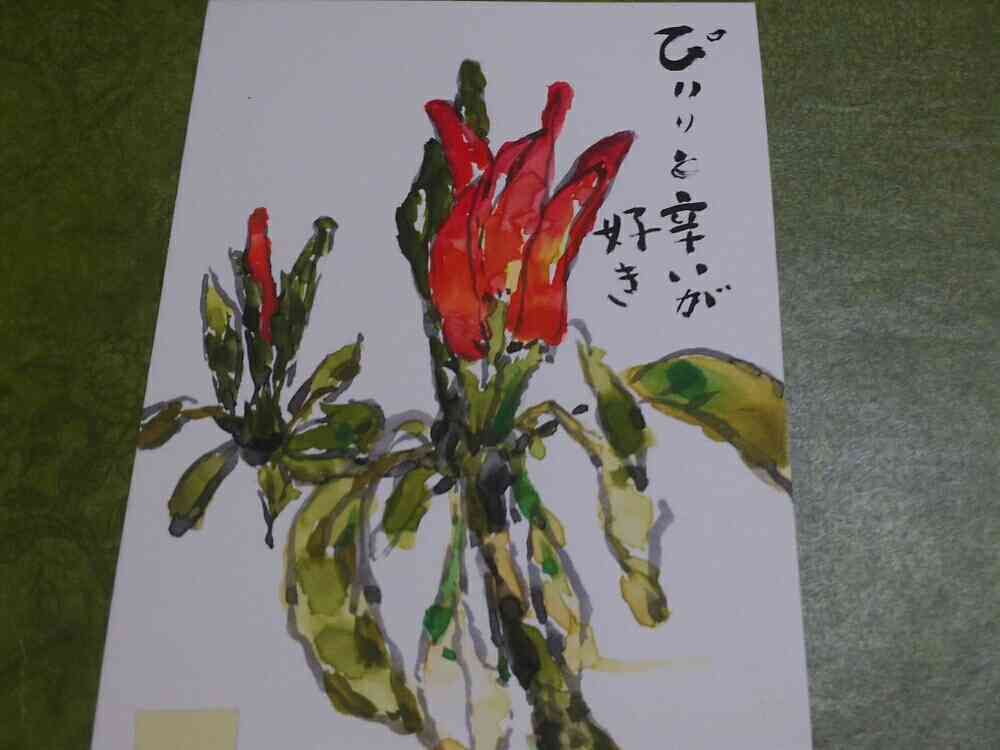 真っ赤に実った唐辛子🌶️心を送る絵手紙が届きましたぁ~