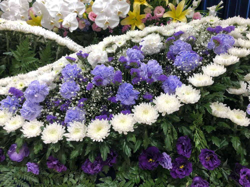 穏やかで安らぎを感じる素敵なお花でお見送り、きっとお父様もお喜びのことと思います。