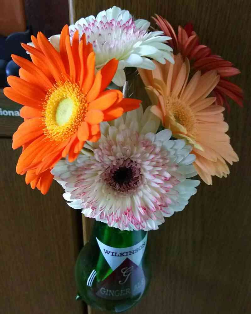夜中にヤバかった数本をカットして、お気に入り💓💓なウイルキンソン辛口ジンジャー瓶に挿しておいた。