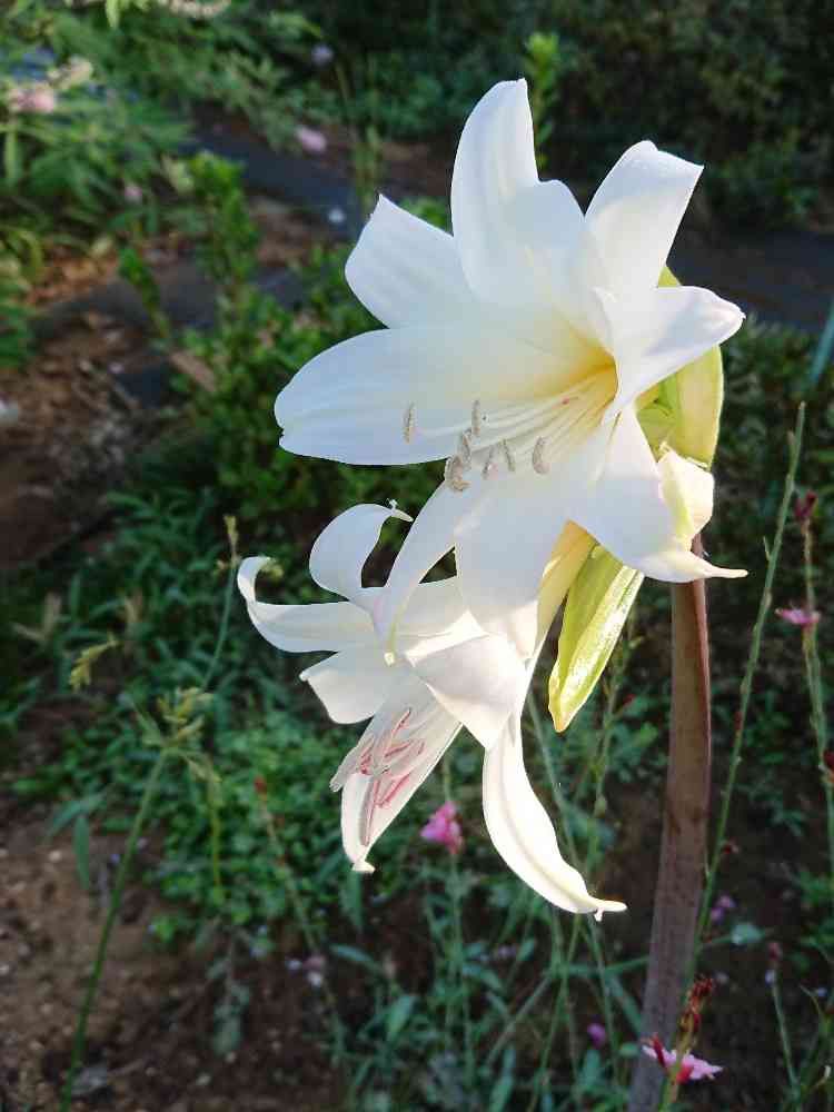 流石詳しいですね。 8月に『ベラドンナリリー ホワイト』とラベルが付いている球根を買いました(同じものだったんですね) メーカーさんは 知名度の高い名前で売るのでしょうかね🙄 前のゼフィランサスもそうですが