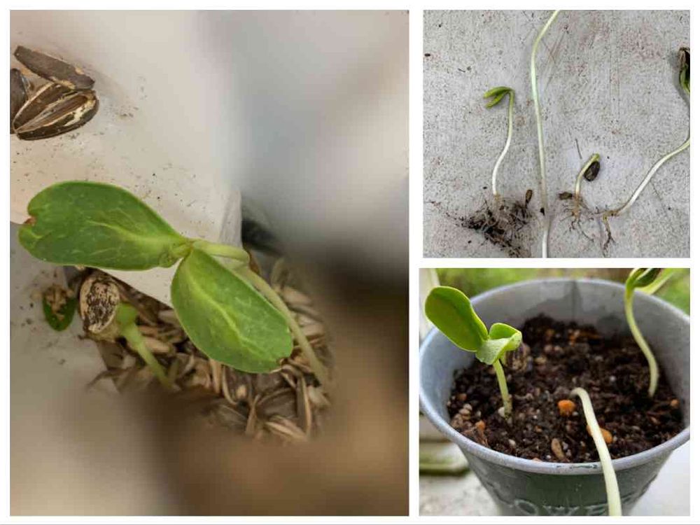 その種カスを入れてたゴミ袋の中でヒマワリが発芽してた〜😂