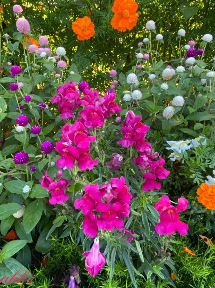 種から育てた、金魚草、千日紅、黄花秋桜❣️