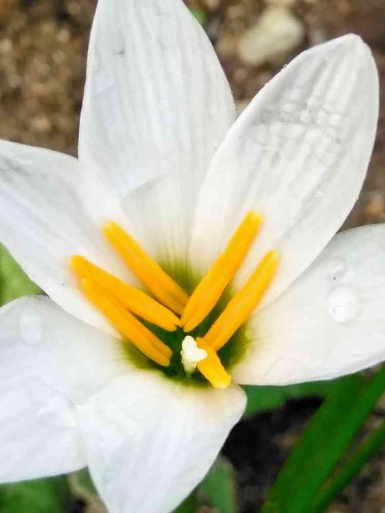 タマスダレ真っ白なお花にシベの黄色が綺麗ですね