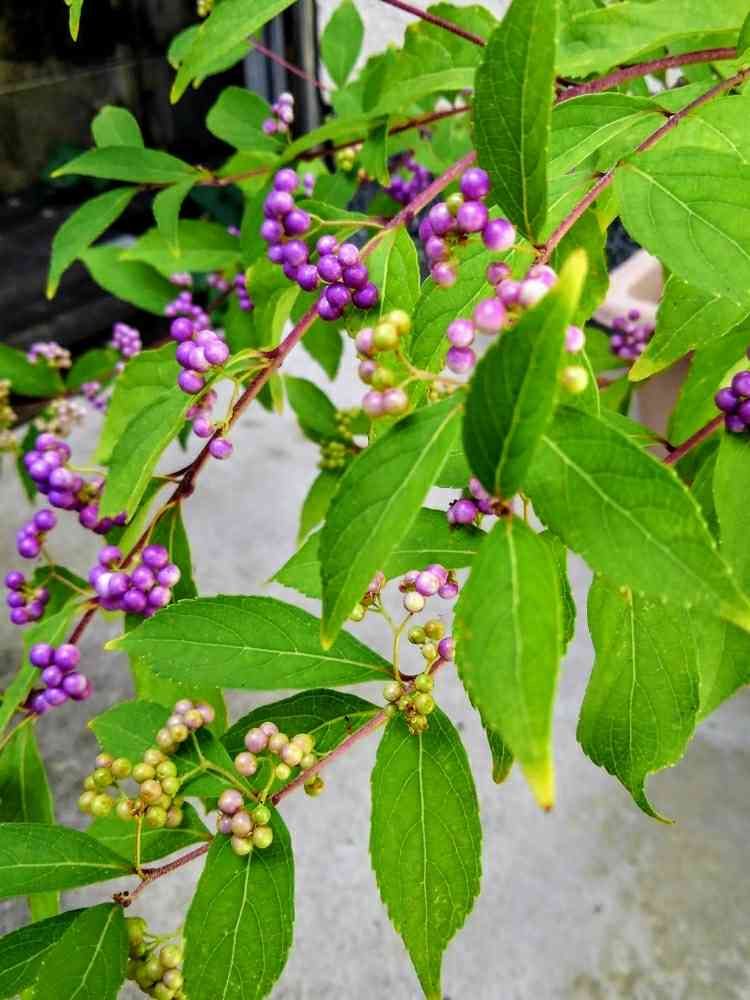 紫式部少し色濃く成って来ました。😄 お行儀の悪い子であっち向いたりこっち向いたり、気ままにしています。冬にはバッサリ✂️ますが