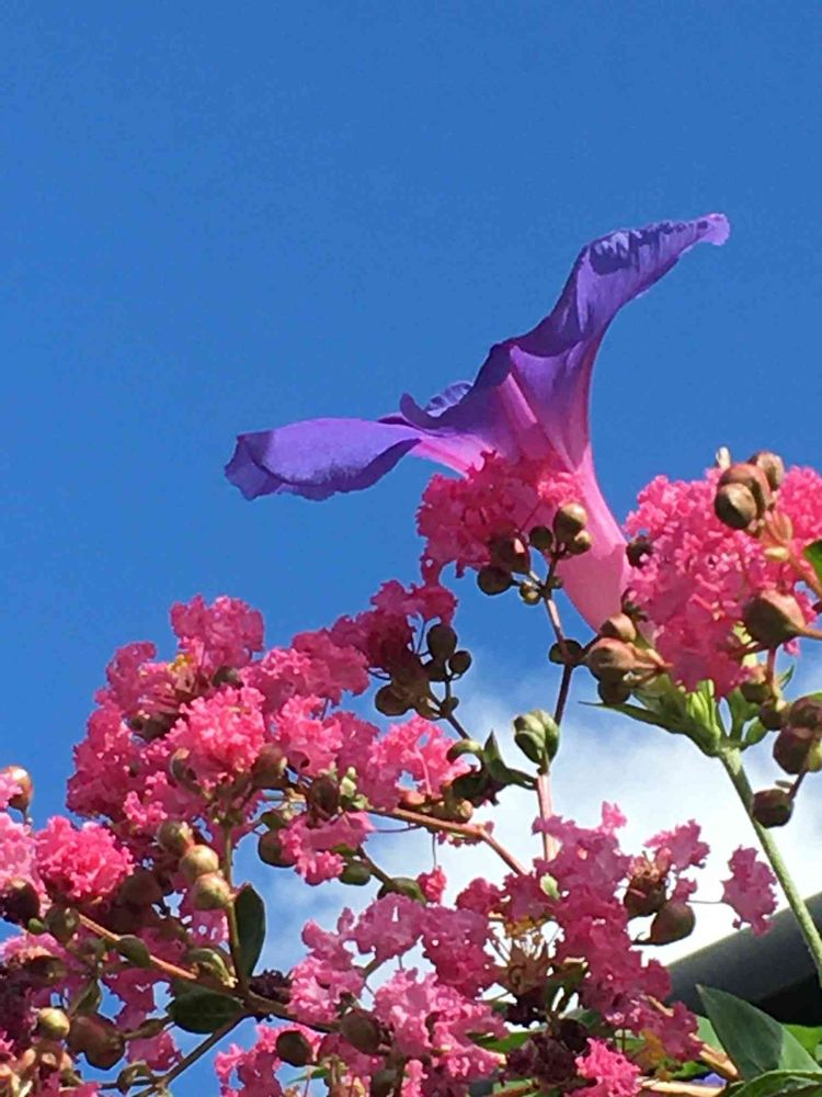 サルスベリの先に更に伸びて行く琉球朝顔💓💜