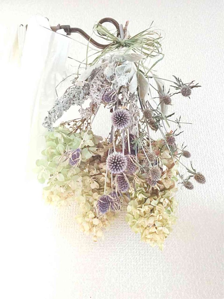 会社の人から柏葉アジサイのドライを頂いたのでスワッグを作りました💕💕