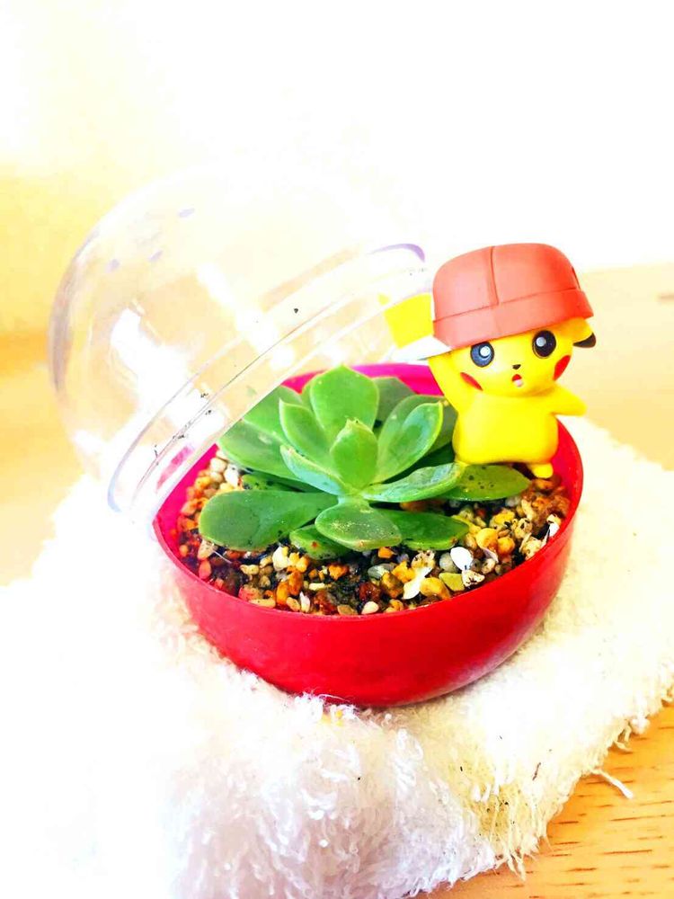 持って帰ってきたカプセルに多肉植物を植えてみたらいい感じに。