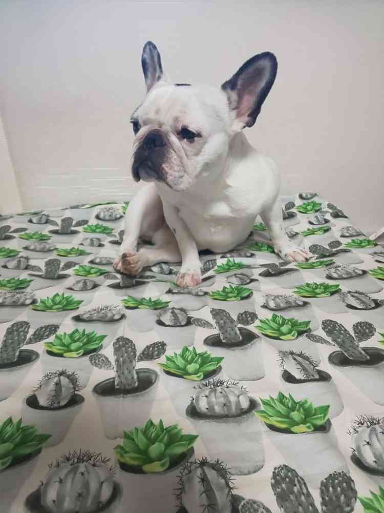 🌵サボテン柄の上でくつろいでます🐶