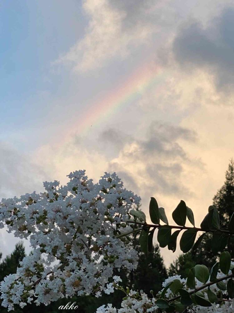 白い百日紅を撮っていたら、虹が見えて、花を愛でていた3人で大騒ぎ‼️