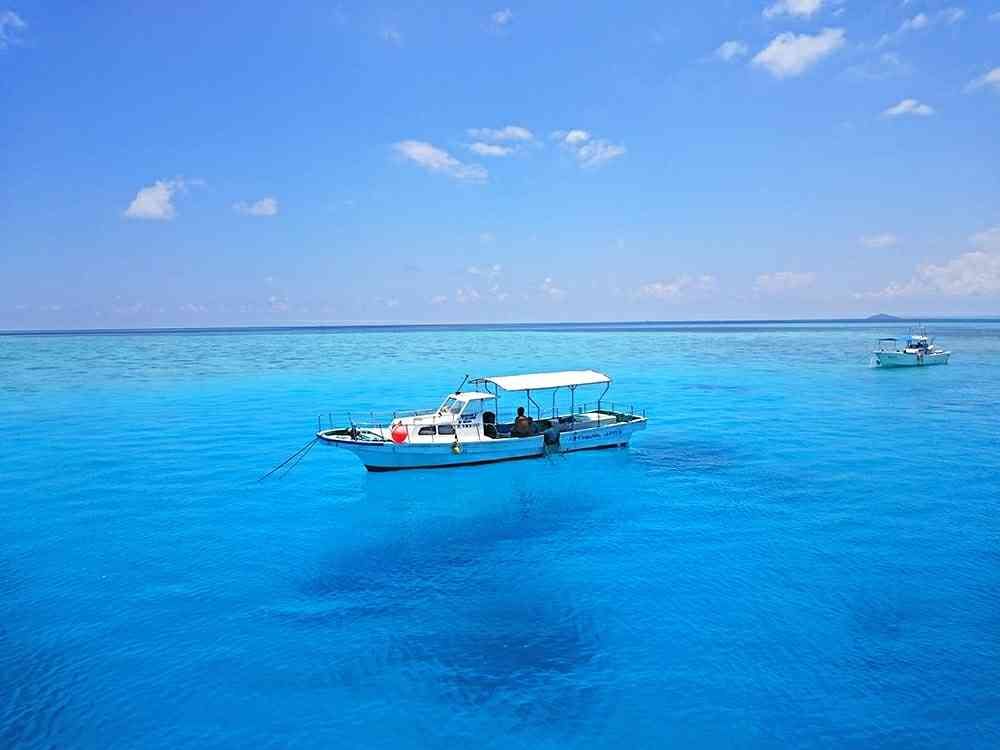 本土から少し離れた外洋なので透明度がとても高く、船の影が水底に見えます❗