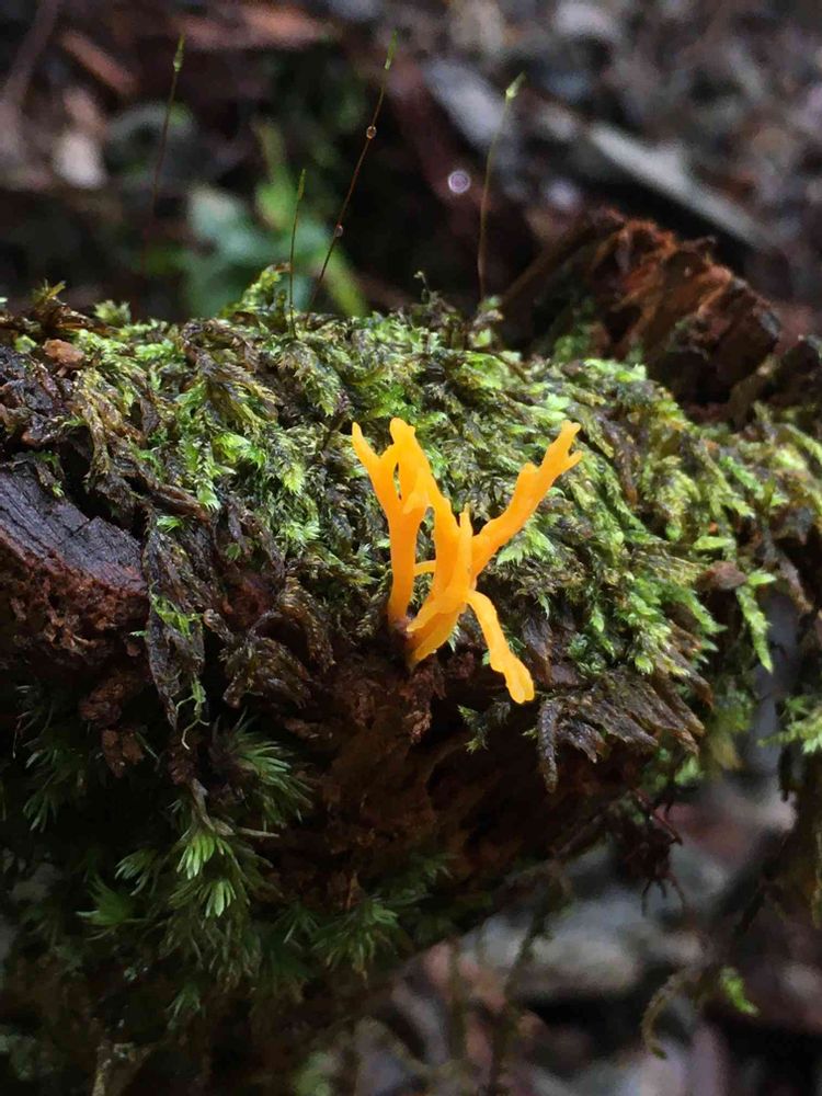 ふかふかの針葉樹の絨毯の上にオレンジ色の鮮やかな珊瑚によく似たキノコがとても映えてますね😍😍💓