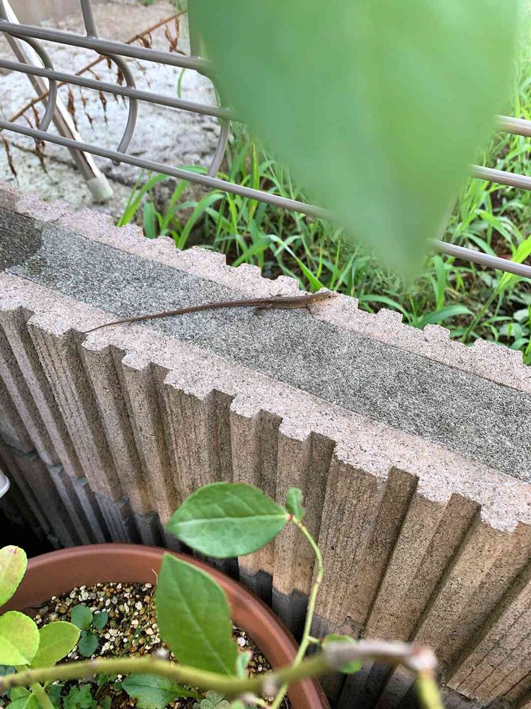 バッタの大繁殖に悩まされている我が家ですが。カナヘビさんが住み着いてくれました😊