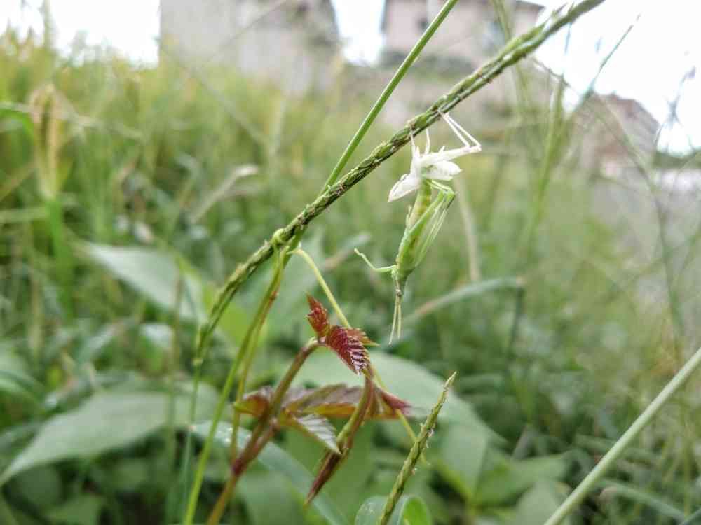 この少し横にウラナミシジミが止まっててそれを撮ってたんやけど、ピントが上手く合わなくて、諦めて帰ろうとしたら、このオンブバッタの脱ぎ脱ぎシーンを見つけました😆🎶