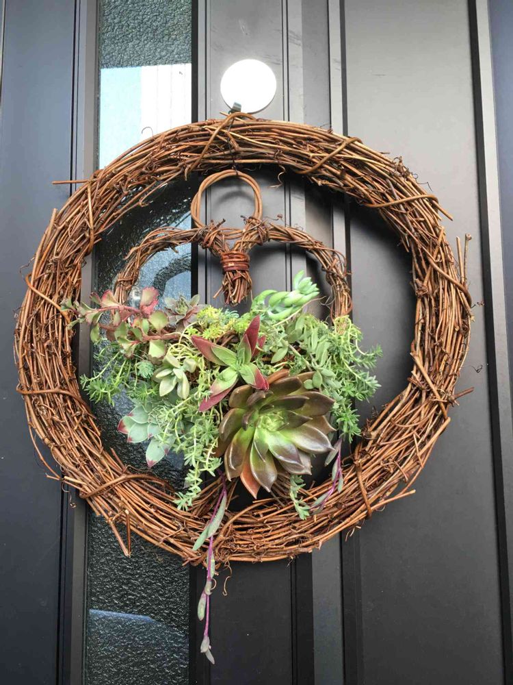 ドアリースを作ってみましたが🚪もし開け閉めする内に、土やら多肉ちゃんが落ちたら⤵️すぐ撤収