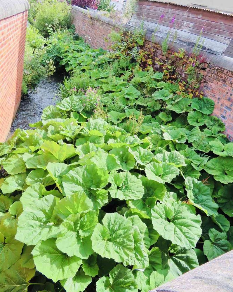 スコットランドのお散歩道の小川に自生していたキサントソーマ(Xanthosoma)💛和名はアメリカサトイモやココヤムで、サトイモ科 / アメリカサトイモ属(キサントソーマ属)。英名はエレファント イアーズ (Elephant Ears)=象の耳(見た目、そのままですね😆)写真は7月25日撮影で、現在(9月11日)は、葉が全てしなびてきています。