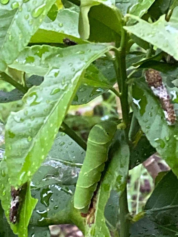今日レモン🍋の所にまた、幼虫が葉っぱを食べていました。また柚子に移動しなくては😰