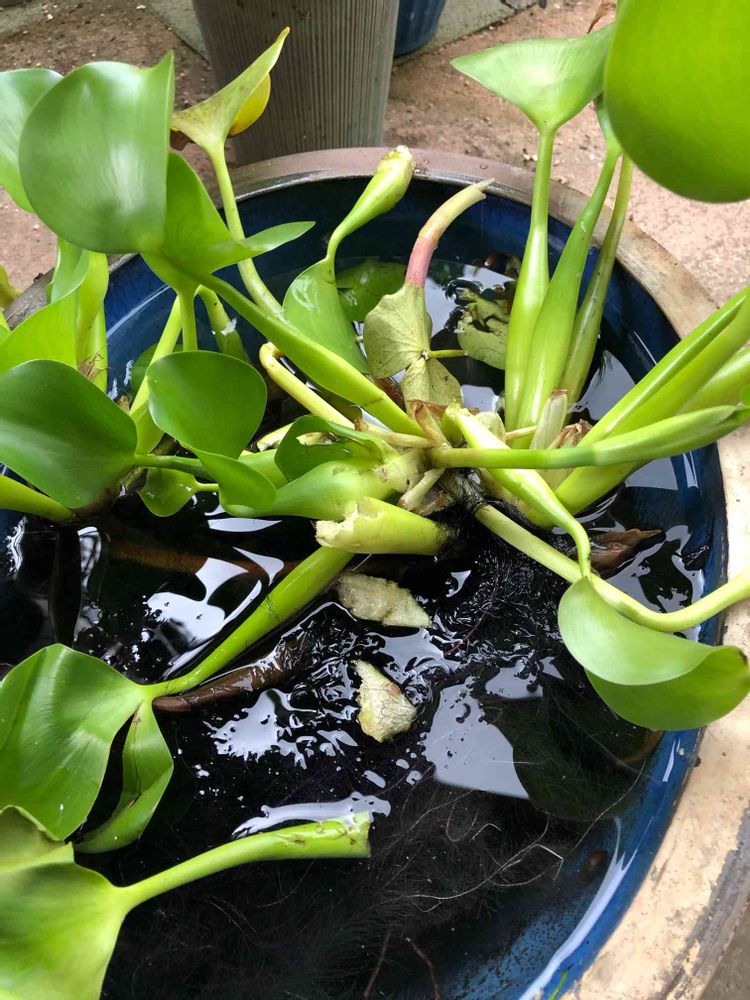 お水を飲んで、ホテイアオイにちょっかいを出した感じかしら?