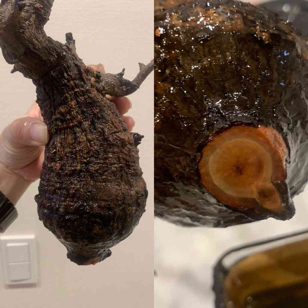 まだ水に沈むし、主根カットしたらきれいでした😆乾燥気味を考慮してちょっと長めにオキシベロン風呂に肩まで浸かってもらったところ。