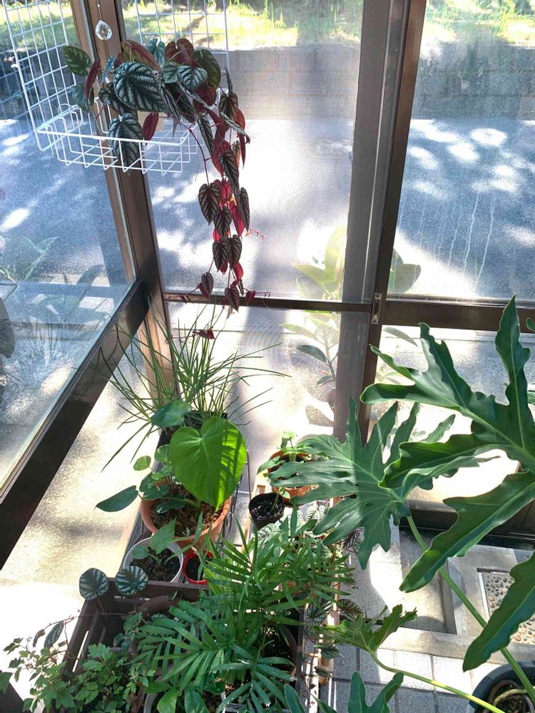 モンステラやセロームは冬もここで、シッサス には寒すぎるので室内だな〜