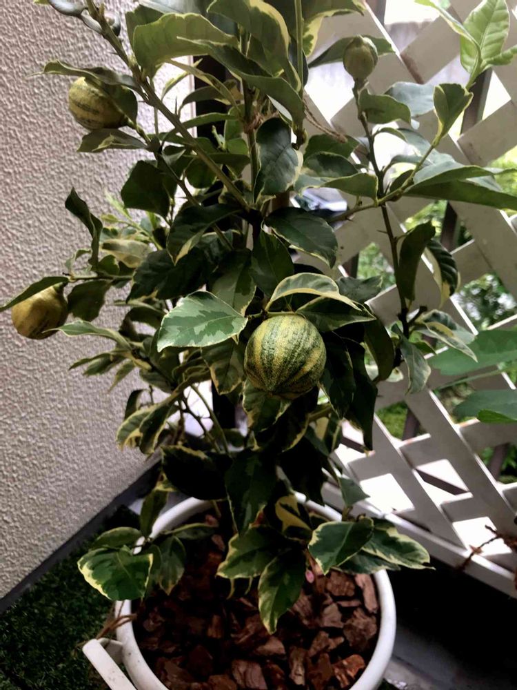 かずささん いいね👍ありがとうございます🎶🌿😆 自分も、レモン好きで、1度実家の庭に植えました🍋 しかし、葉っぱに、大きなミドリ君が住み着き、アッと言う間に、丸坊主に……😱😱 オマケに、葉っぱがなくなった枝を、祖父が、雑草だと勘違いして、チョキチョキ✂️😱✂️🦋 斑入りレモン、初めて見ました🍋 かわいぃですね😆