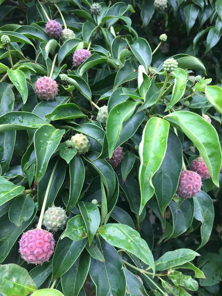 キャー😆ヤマボウシの実、こんなに綺麗なピンク❤️うちの近所は茶色くなって、落ちてます😅