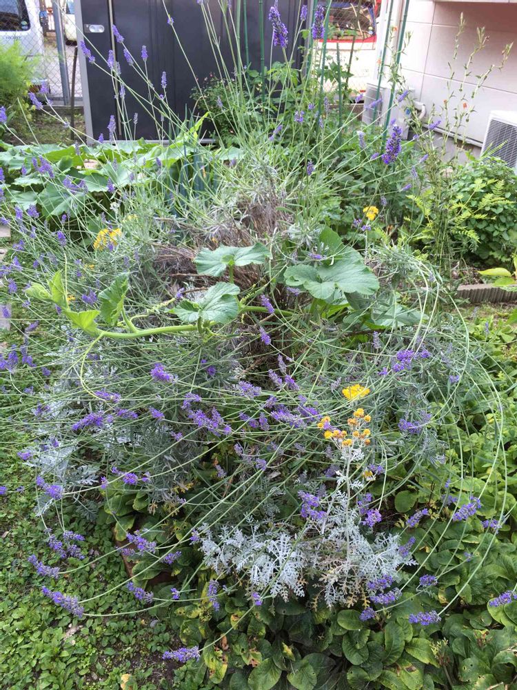 木立ち性のラベンダーが伸び放題ですね。渦を巻いているみたい。