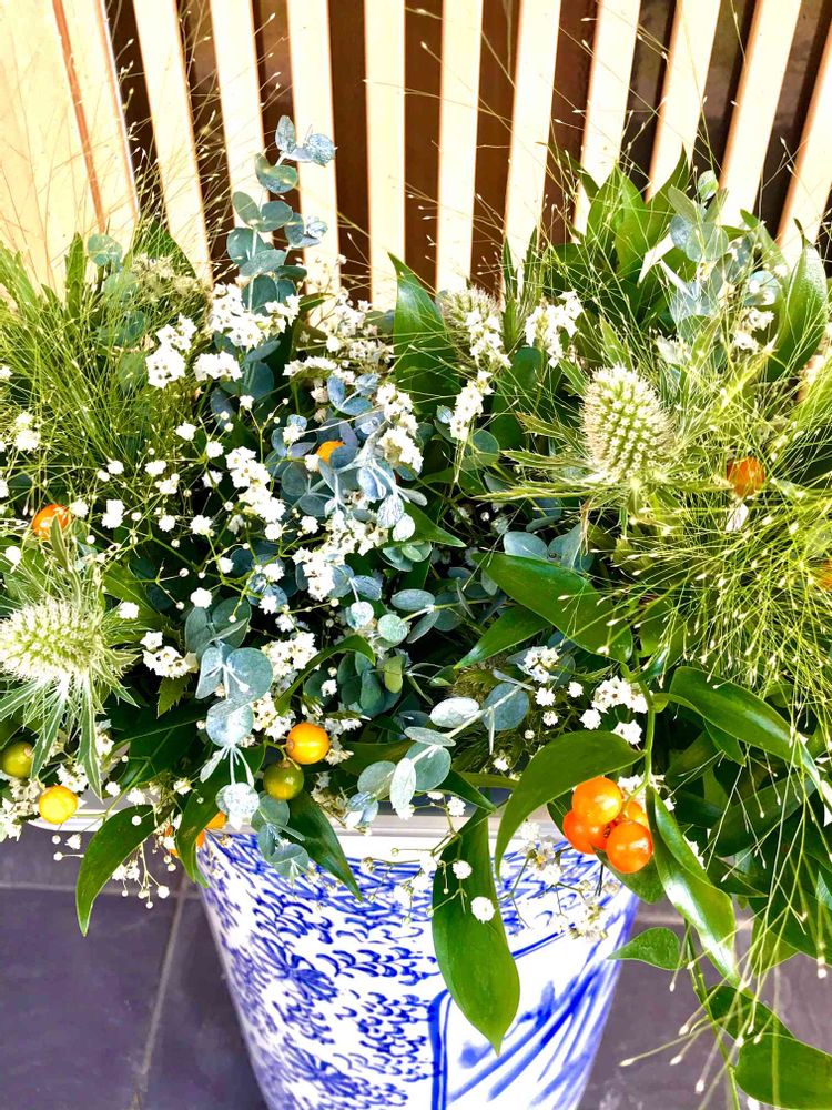大きな〜染め付けの花瓶に、お花さんを生けられたのか❓😍と思いました😅