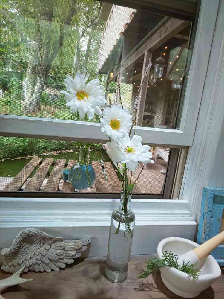 カフェの窓辺にはガーデンに咲いてるシュウメイギクが生けてありました♡