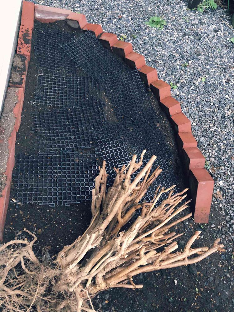 効くかわからないけど取り急ぎチクチクを敷いて…引っこ抜いたアシザイの根っこをガオッ!的に威嚇で置いてf^_^;