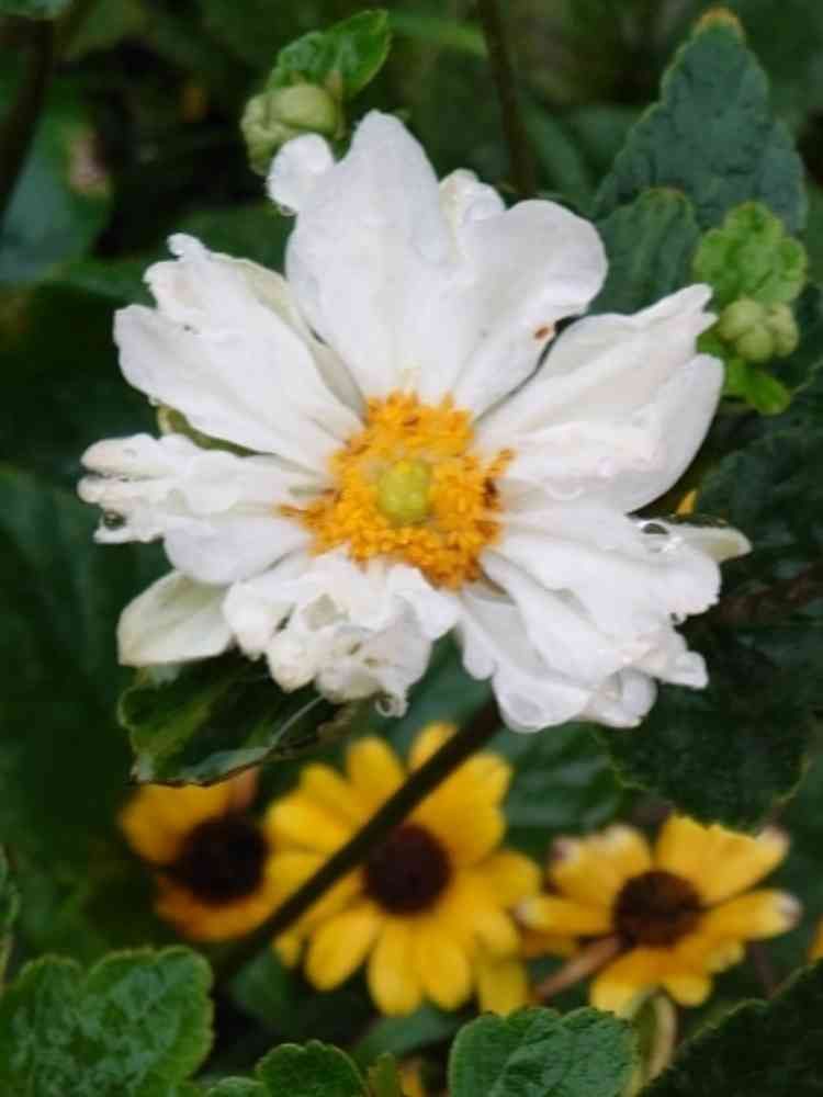 バックのルドベキアタカオがいい仕事しています!!秋明菊の白が映えますね。