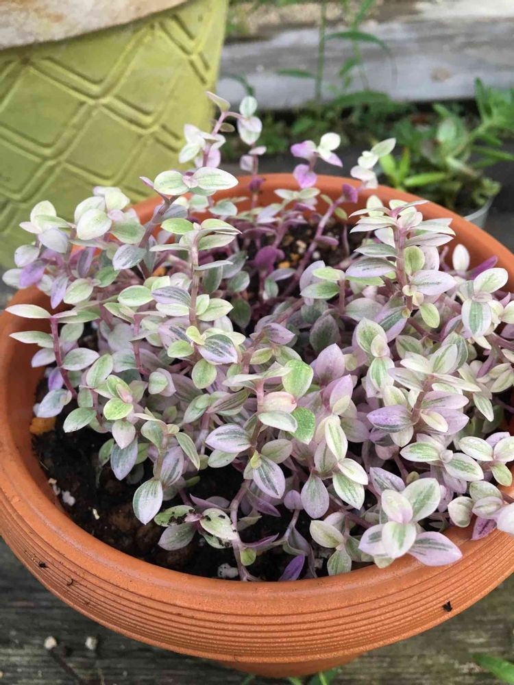 おはようございます😃今日は涼しくて過ごしやすい天気💕昨日は雨の中、園芸店へ行きました😊新しいカリシアを買ってきました。ふた回りくらい大きな鉢に植えました❣️もりもりになーれ🍀🍀🍀