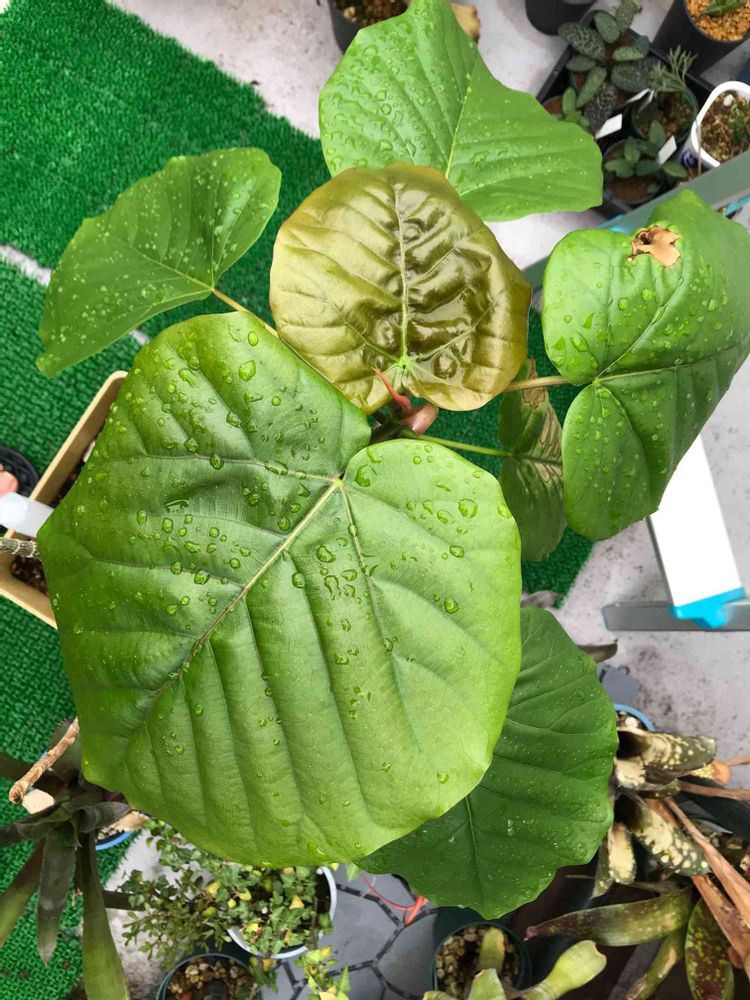 4年前に祝いものでいただいてから4年。室内で動きの少ない生活を続けていたところから一変、外管理で目覚めたらしく、一週間で二枚葉が増えました。葉の大きさも過去最大。