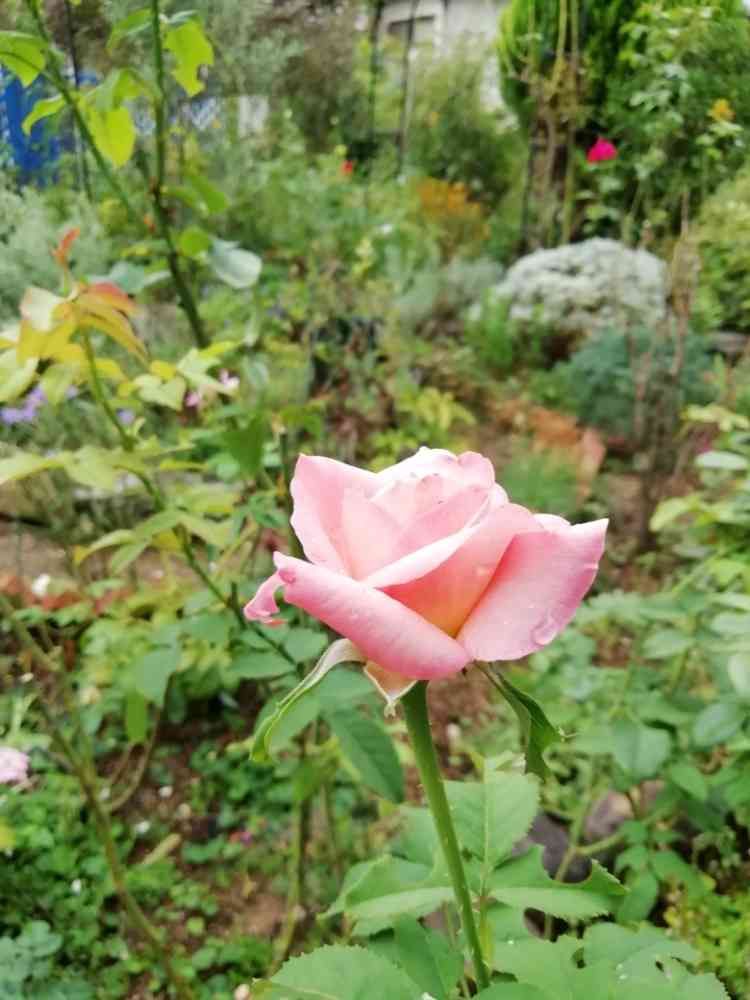 お庭にバラが一輪🌹咲いているだけで気分は華やかになりますね🎵
