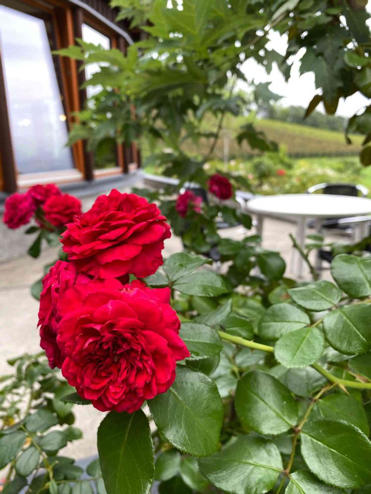 お客様が沢山居たので、中を撮る事が出来なかったのですが、建物の側のバラ🌹が目を引きました😍