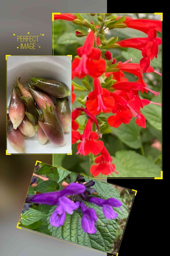 刺繍の先生からブルーサルビアを頂いたはずなのに、赤が咲いて‼️