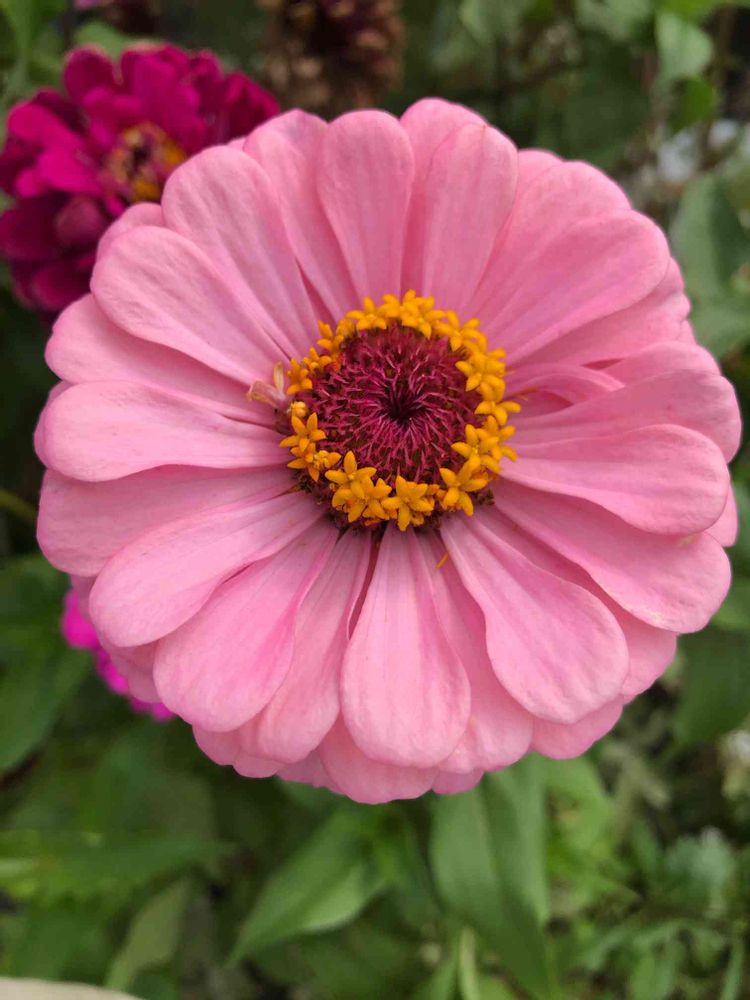 完璧な真ん丸ジニア🌼素敵やね😆色合いも綺麗やね🤗