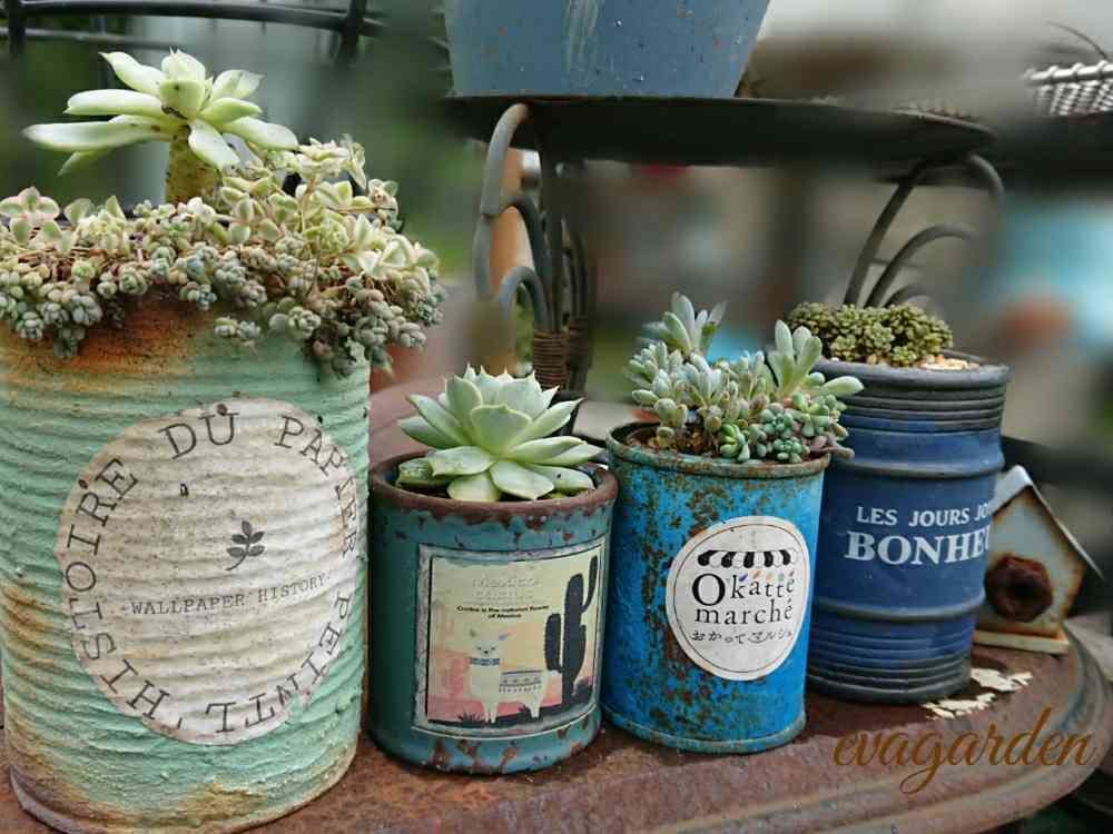 お洒落なリメ缶に、可愛い多肉さん達💞