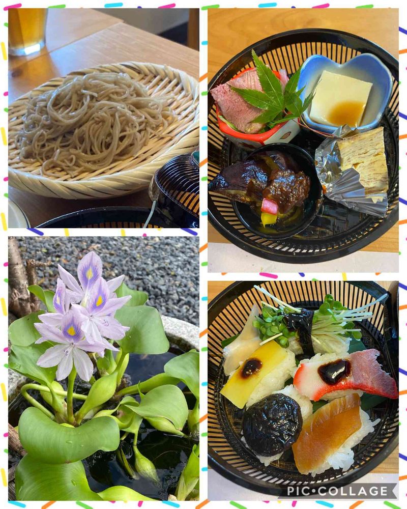 この、お蕎麦のセットは野菜のお寿司もついてて1500円😊とても、綺麗なもりつけで味も(*b'v・)b+。 4連休も、明日残すのみと