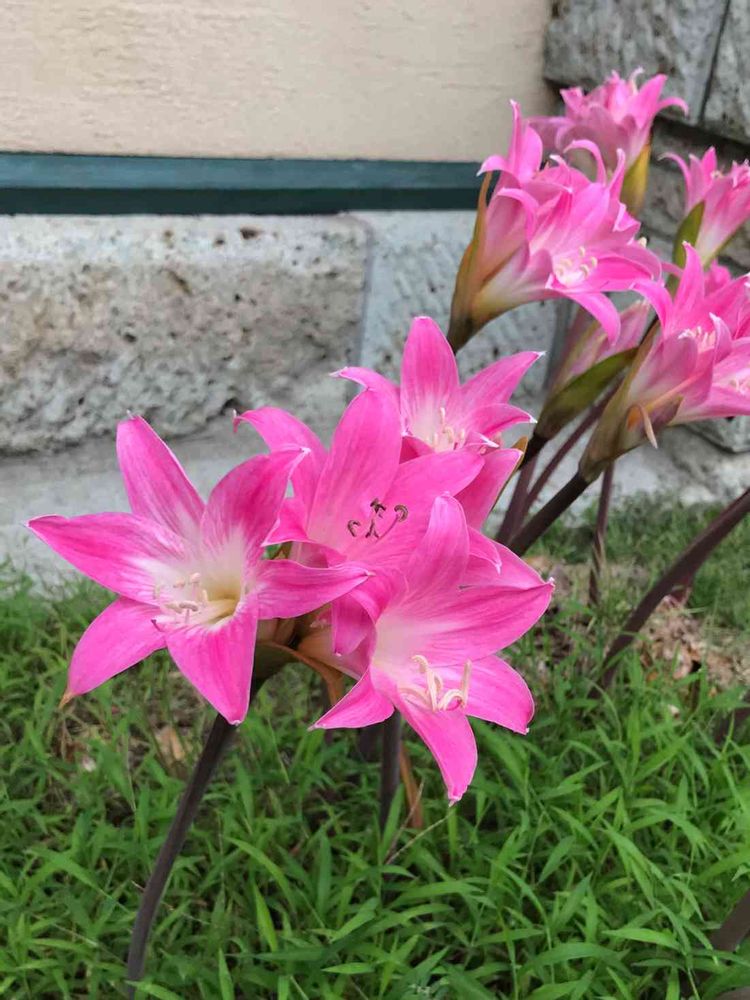 葉っぱがないなぁと思って調べたら、ベラドンナリリー(ホンアマリリス)は花後に葉が出るらしいです。