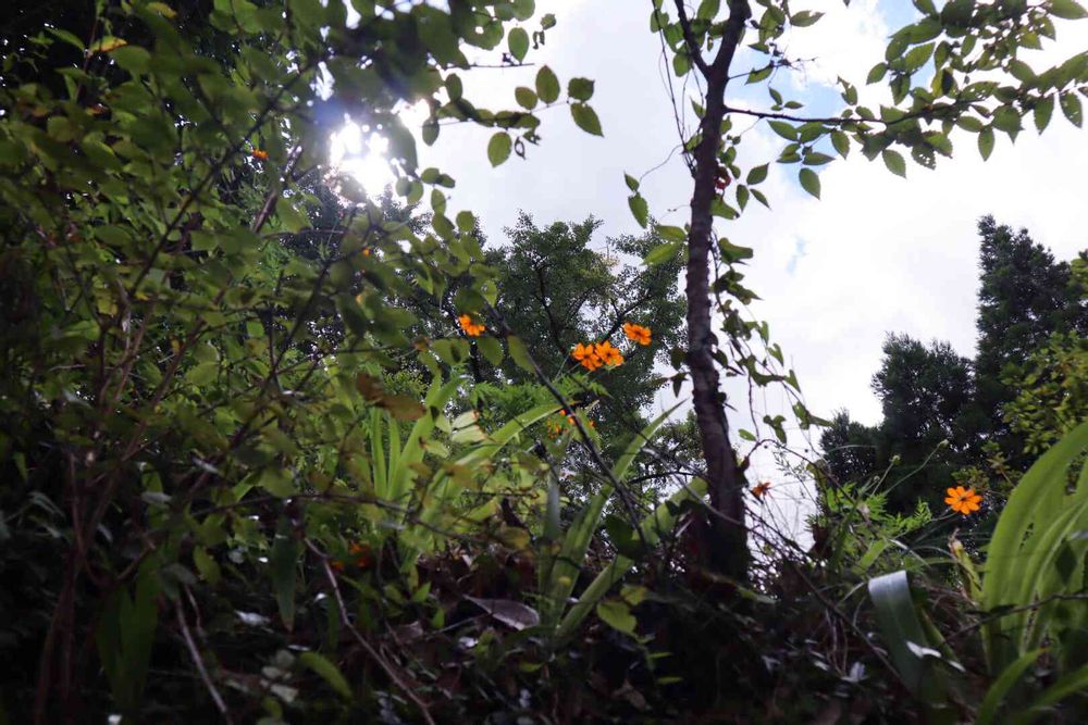 グリーンの中のオレンジ、そこに日が差していた。何となく、小さな秋を見つけた感。