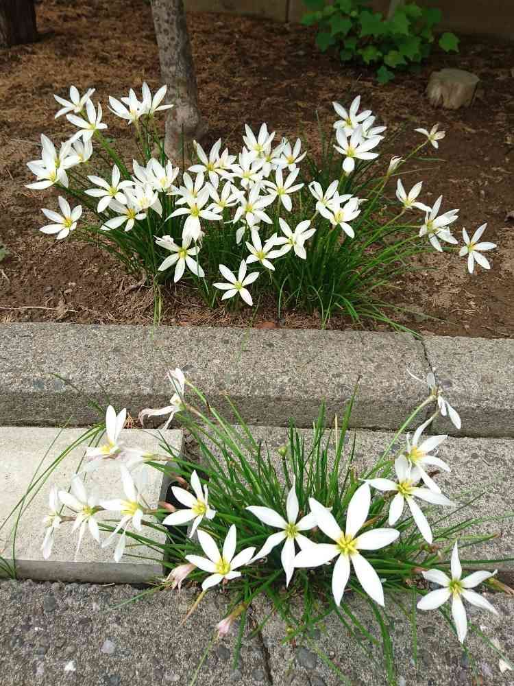 我が家のタマスダレ(ゼフィランサス)がはみ出してます。