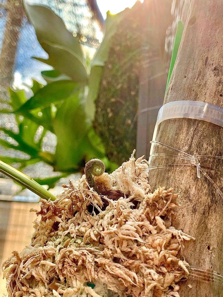 ドリナリア クエルシフォリアの斑入り株から初めて胞子葉が出てきました(◍ ´꒳` ◍) 朝日を浴びて気持ちよさそうです。
