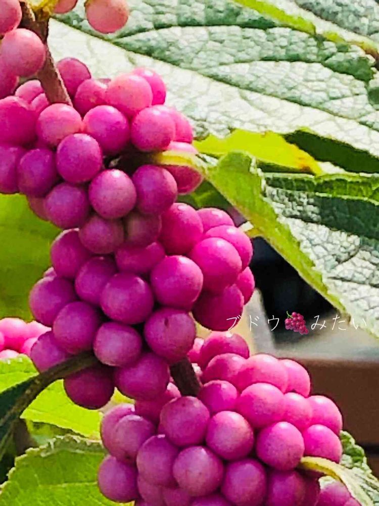 凄いですね。これが、本当の、紫式部なんですね。では、我が家のは?コムラサキ式部なんですねー多分?ワン🐶🍁🎃👿👻🤣🍠🍎🍏🍊🌰🍄