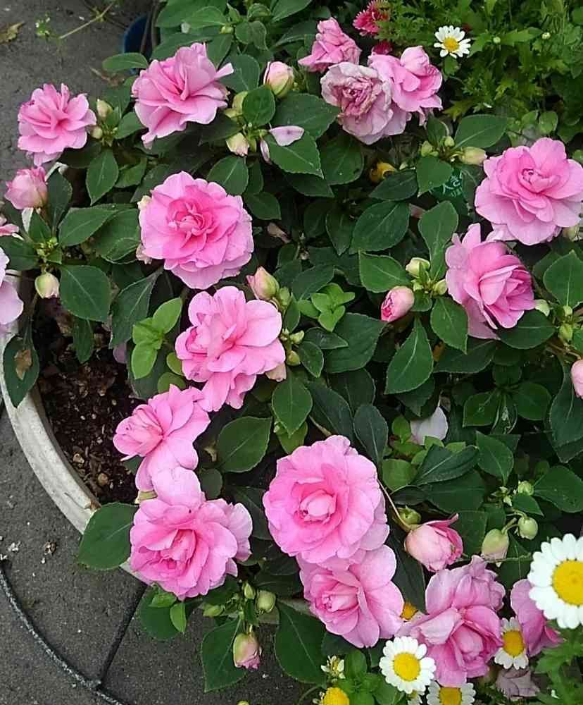 ピンクの八重咲きのインパチェンス可愛いなぁ😍