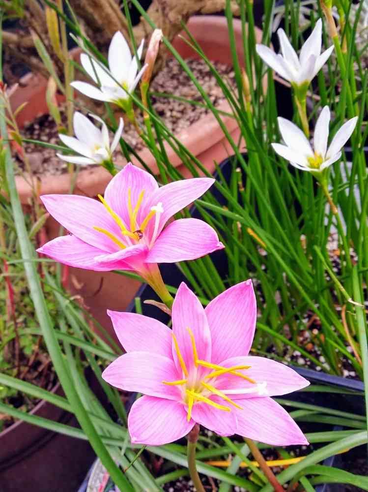 ゼフィランサスのピンク初見😍かわいい花が癒やしてくれるよね、根を詰めないように作業してね☺️✨