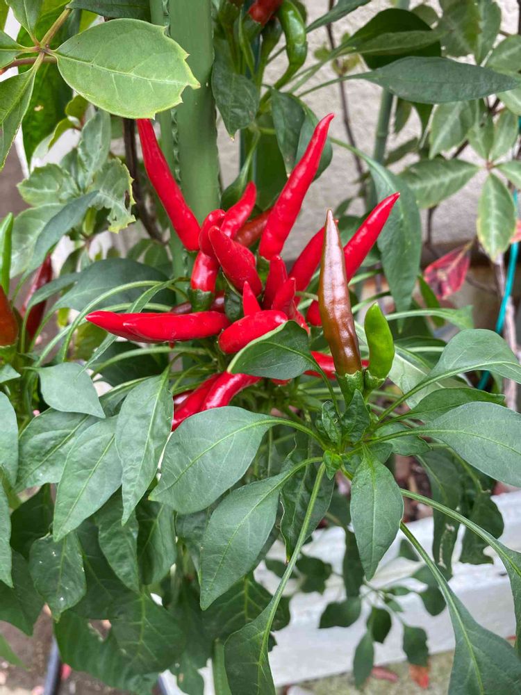 裏庭にこぼれた種子から立派な唐辛子が成りました!。を