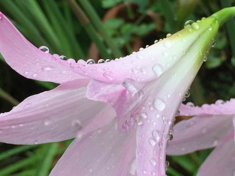 夕立が通り過ぎお庭に出たら雨粒が……😍これが本当〜のレインリリーですね🤗☔️