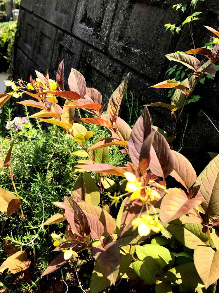 リシマキアファイアークラッカー、見えにくいけど、黄色の花が咲いています!
