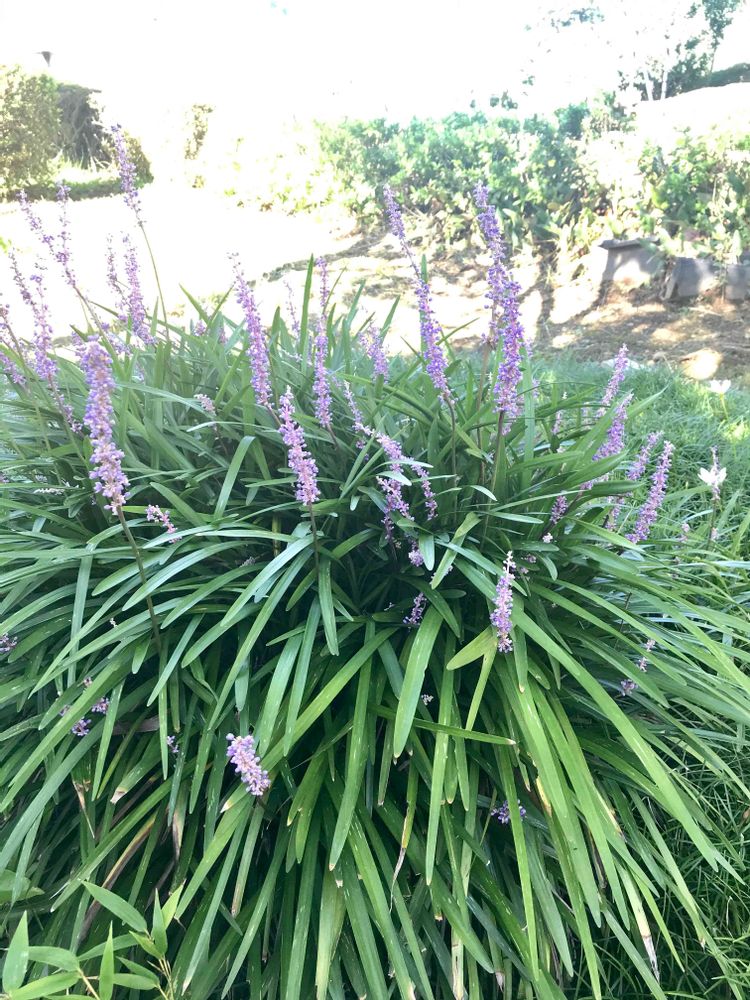 庭に勝手に生えてたりします。園芸品種で斑入りのヤブランもあります。花は同じです。