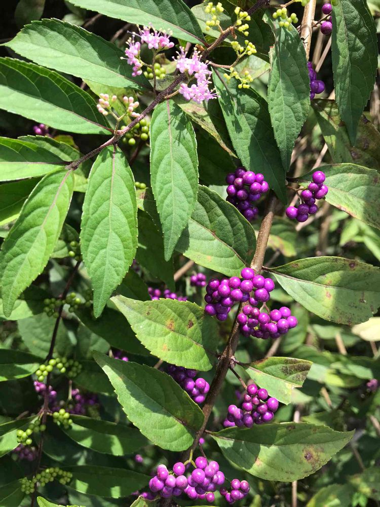 5年前、友達が庭に植えてくれた紫式部。花が咲き、実を結ぶと便りを出すのが習慣。